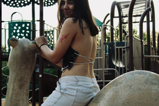 Measurements: 27.5" length - 9.5" center front to bottom - 11" boob top to bottom - 27.5" strap - 5" back top to bottom - 52" lace